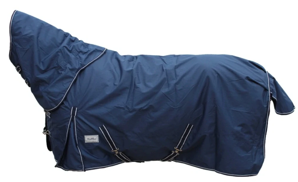 Nepromokavá výběhová deka s fleecovou podšívkou. Deka má klasický střih s odnímatelným krkem na suchý zip. Deka má přední zapínání s možností nastavení délky, rozparek u předních nohou pro pohodlný pohyb, křížové zapínání pod břichem a mezi zadníma nohama a integrovaný chránič na ocas.