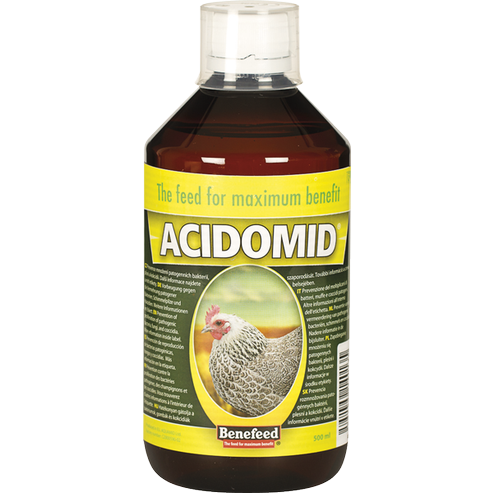 Acidomid je přípravek s preventivními účinky proti množení bakteríí, plísní a kokcidií pro drůbež.