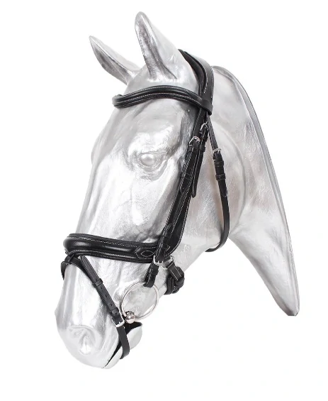 Anatomická uzdečka se švédským nánosníkem značky Kentaur. Speciálně anatomicky tvarovaný nánosník je vyroben tak, aby minimalizoval tlak na nejcitlivější oblasti na hlavě koně. Anatomický měkce vypolstrovaný nátylník rozkládá tlak na zátylek koně a zvyšuje komfort koně. Uzdečka je doplněna o rozšířený polstrovaný podbradník. Uzdečka má velmi pěkný design s elegantním bílým prošíváním, přezky jsou vyrobeny z nerezové oceli. Uzdečka je dodávána včetně plátěných otěží se zarážkami.