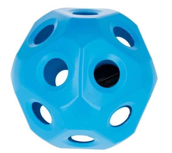 Balon na seno pro koně a skot vhodný do stáje a na pastvinu. Lze zavěsit do boxu. 19 otvorů o průměru 6 cm. Průměr celého balonu je 40cm. Odolný plast vůči UV záření. Plnící otvor má 11,6 cm se šroubovacím uzávěrem.