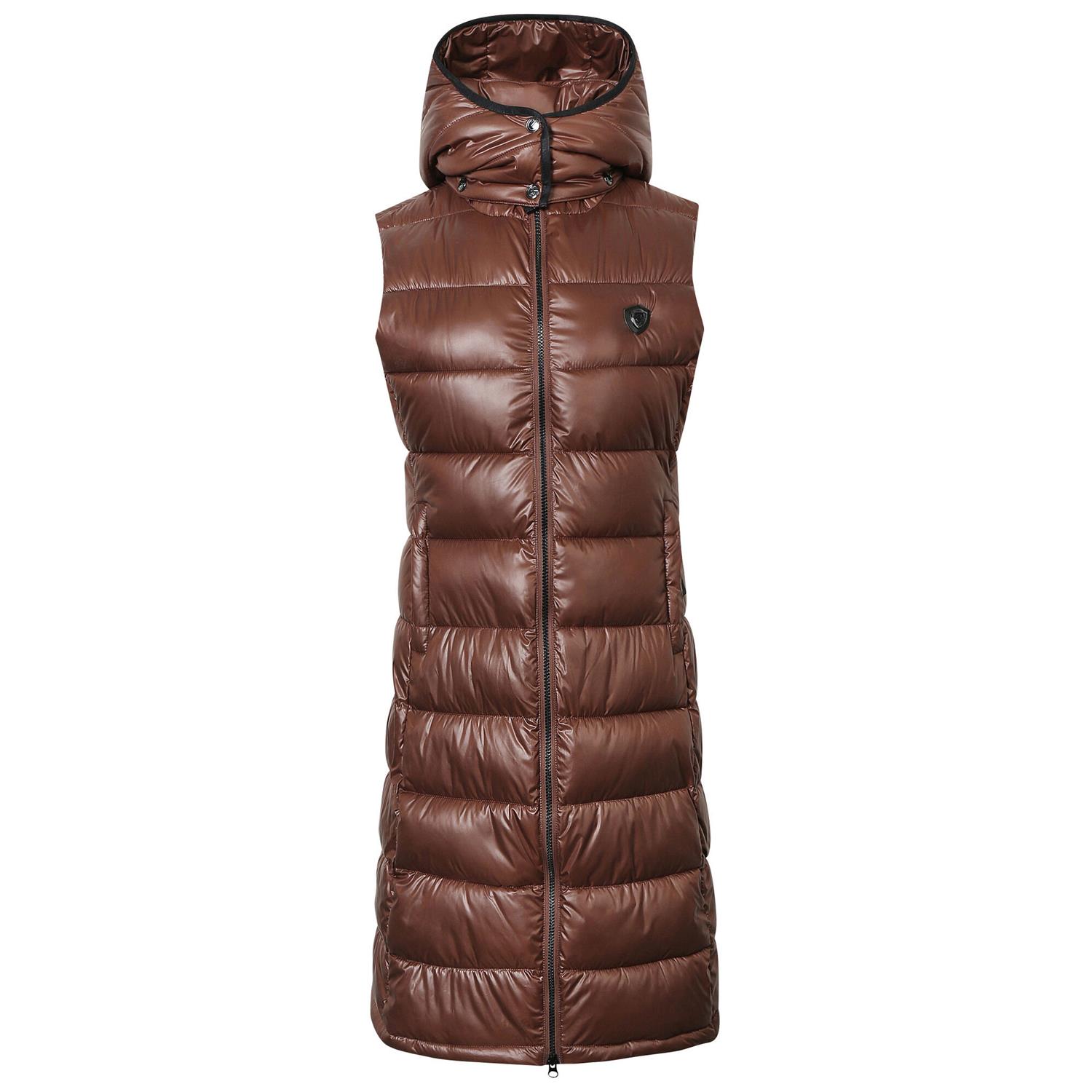 Dámská zimní vesta Covalliero 2023, dlouhá, hnědá