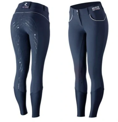 Luxusní dámské rajtky Horze Nordic Performance s gripem ve tvaru různých slov včetně loga, který umožňuje výborný kontakt se sedlem. Rajtky mají krásné plné barvy a kontrastní lem kapes a část pasu, kde je také logo firmy Horze. Rajtky jsou zakončeny elastickou vsadkou, jsou velmi příjemného střihu a neomezují jezdce v pohybu. Rajtky jsou vyrobeny z velmi příjemného, lehkého materiálu. Mají poutka na pásek a uprostřed zadní části v pase je kontrastní logo Horze. Zapínání v pase mají na 2 skoby včetně cvočků. Tyto rajtky jsou jedním z nejvíce oblíbených a prodávaných typů jezdeckých rajtek našich zákaznic.
