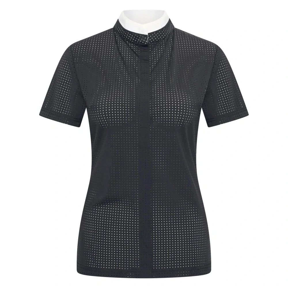 Pozvedněte svůj závodní outfit na novou úroveň s trikem z perforované látky. Tento model je navržen s důrazem na eleganci a funkčnost. Stylová manžeta se zapínáním na malý patentek umožňuje snadné nastavení, zatímco skryté zapínání na přední straně dodává tričku čistý a sofistikovaný vzhled. Bílý stojáčkový límeček má zapínání na dva malé patentky pro rychlé zapnutí.