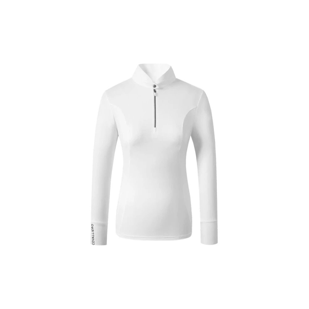 Dámské závodní bílé tričko na koně Covalliero se stojáčkem a dlouhými rukávy.