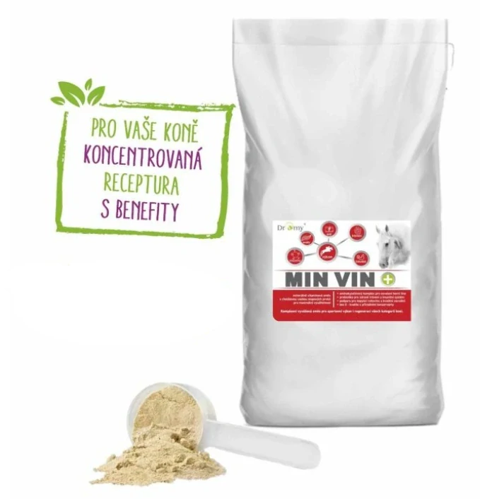 MinVin je komplexní a koncentrovaná směs aminokyselin, minerálů, vitaminů a probiotik, obohacená o betaglukany, mannan-oligosacharidy a nukleotidy, které mají vysokou biologickou dostupnost. Je navržena tak, aby splňovala specifické potřeby koní v různých životních fázích a při různých úrovních zatížení.