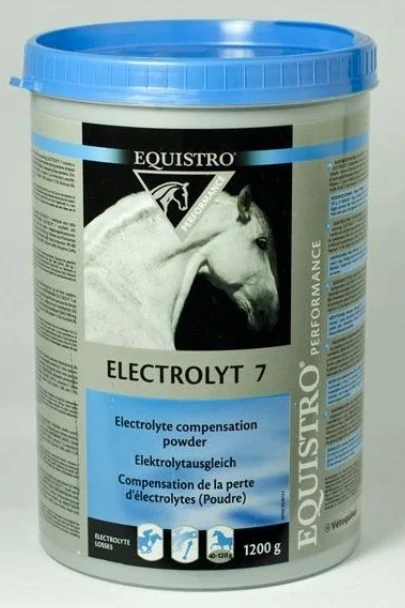 ELEKTROLYT 7 dietní doplňkové krmivo pro koně, určené ke kompenzaci ztráty elektrolytů v důsledku silného pocení. ELEKTROLYT 7 obsahuje vysokou koncentraci elektrolytů, vitamin E, lehce vstřebatelný vitamín C a chelátový zinek (IPALIGO®).