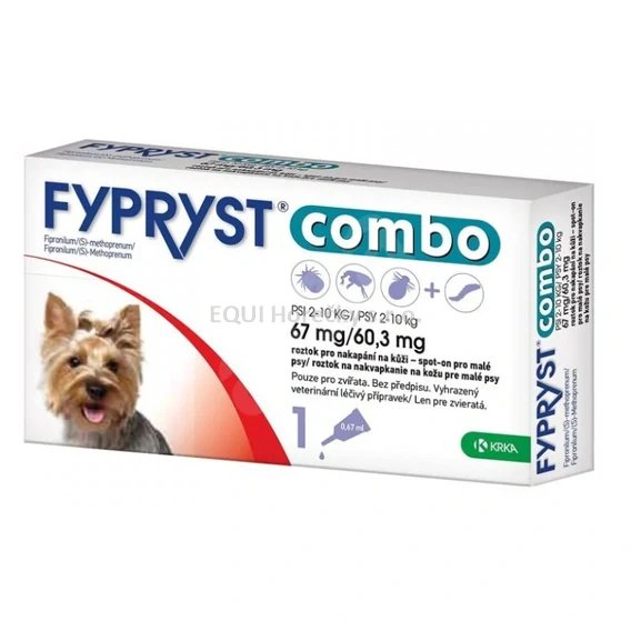 Fypryst combo pro psy je přípravek určený k léčbě a prevenci napadení blechami (Ctenocephalides felis.), klíšťaty (Ixodes ricinus, Dermacentor variabilis, Dermacentor reticulatus, Rhipicephalus sanguineus) a všenkami (Trichodectes canis) u psů o hmotnosti 2-10 kg.