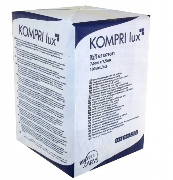 Gáza nesterilní KOMPRI lux 7,5cmx7,5cm,17N,8W, 100ksskladem 2 ks59 Kč/ ks49 Kč bez DPH
