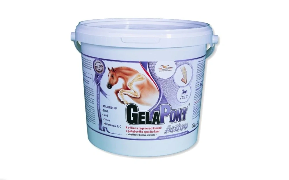 Gelapony Arthro je doplňkové krmivo pro koně v zájmovém chovu, dostihové a sportovní, s vysokým obsahem bioaktivních kolagenních peptidů a vitamínů. Gelapony®Arthro vyživuje a regeneruje tkáně kloubního systému, posiluje kosti, vazy a šlachy. Díky vysokému obsahu kolagenu je vhodné pro starší nebo intenzivně zatěžované koně.