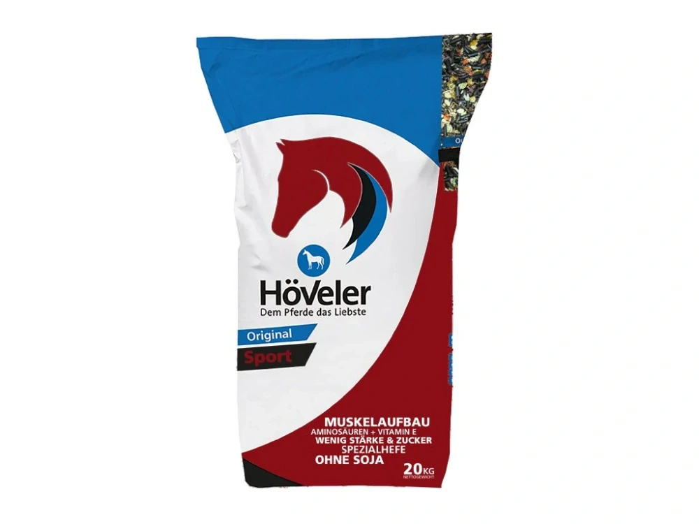 Höveler Sport je vysoce stravitelná müsli směs bohatá na bílkoviny a aminokyseliny s nízkým obsahem škrobu a cukru pro sportovní koně a poníky. Vysoký obsah esenciálních aminokyselin, jako je lysin a threonin, a také přidaný vitamín E cíleně podporují svalový metabolismus koně. Pečlivě vybraná kombinace hydrotermálně zpracovaných obilných vloček, cenných esenciálních mastných kyselin a bezobilných složek zajišťuje příjemnou hladinu energie a díky nízkému obsahu škrobu a cukru tvoří krmení šetrné k žaludku a střevům.