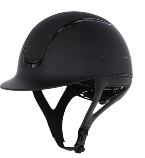 Jezdecká helma na koně v černé barvě s matnou skořepinou a flitrovaným prostředním panelem.