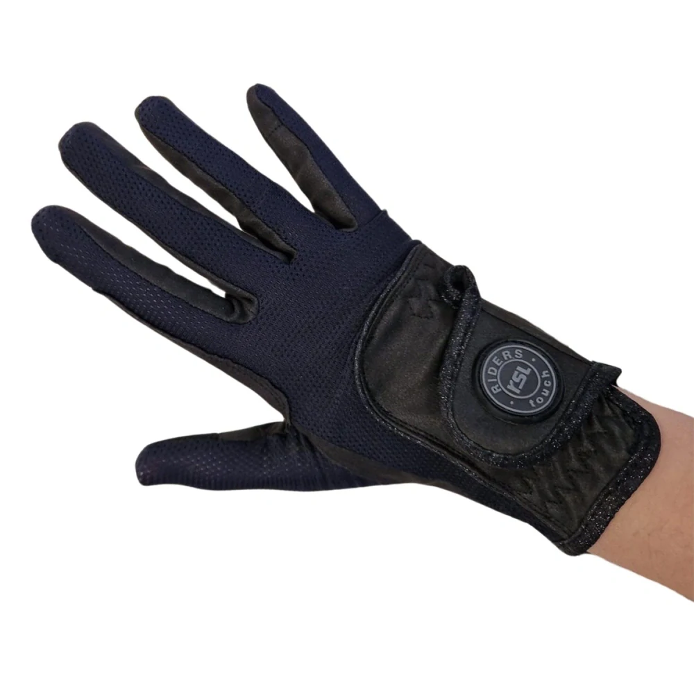Jezdecké rukavice značky RSL v černé barvě. Vrchní materiál je vyroben z elastického síťovaného materiálu, který dokonale přilne na ruku a neomezuje v pohybu. Dlaň je vyrobena ze syntetického materiálu, na palci a ukazováčku je speciální materiál, díky kterému můžete ovládat svůj dotykový mobilní telefon. Zapínání na Velcro suchý zip s logem RSL Riders Touch.