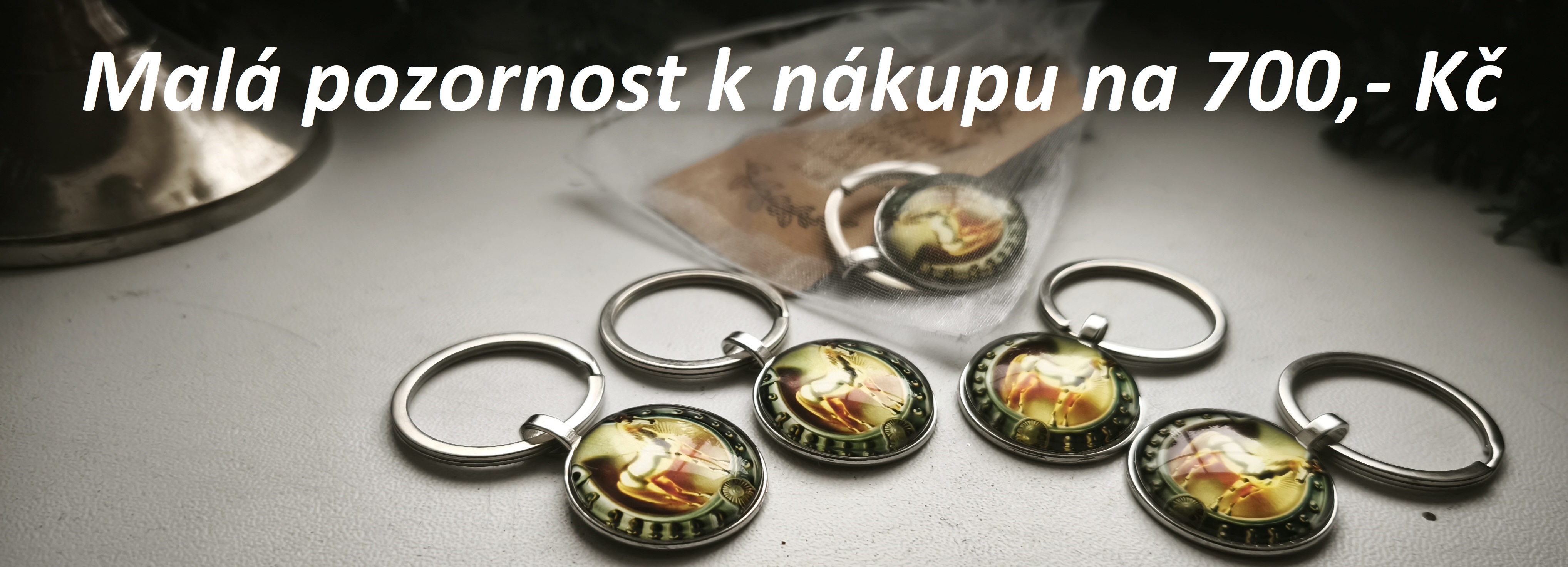 Vánoce se blíží, tak i my začínáme malou nadílkou. K Vašemu nákupu nad 700,- Kč (včetně) přidáme jako malinkou pozornost pěknou klíčenku s motivem koně a podkovy v dárkovém pytličku. Krásná drobnůstka na klíče od skříňky nebo od sedlovny...