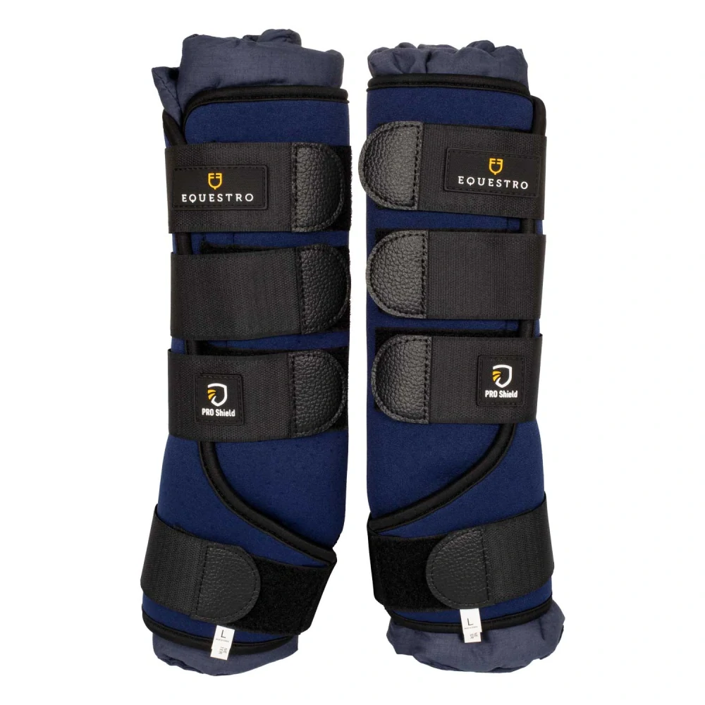 Vysoce kvalitní zateplovací stájové kamaše Equestro jsou ideální na chladné dny. Kamaše vyrobeny z odolného kvalitního neoprenu, jsou extrémně prodyšné, zabraňují tak přehřátí nohou. Vybaveny pohodlným zapínáním na suché zipy, nastavitelnými dle potřeby, gumová výztuž s logem Equestro. Dodávány v páru, vhodné na přední i zadní nohy.