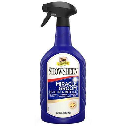 Absorbine Miracle Groom je přípravek 5v1, který srst koně čistí, vyživuje, zbavuje zápachu, rozčesává hřívu a ocas a dodává srsti a žíním hedvábný lesk. To vše s velice jednoduchou aplikací bez použití vody.