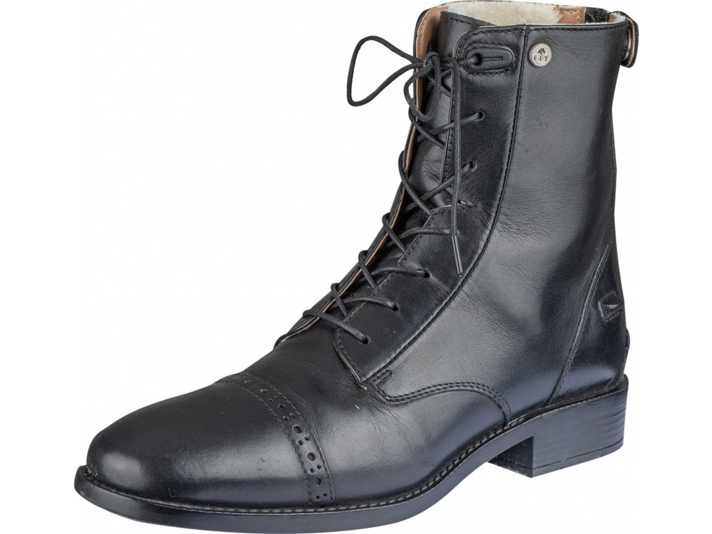 Kožená jezdecká perka značky ELT. Praktické šněrování vpředu pro snadnější zapnutí. Vzadu zip a přezka na cvoček. Pohodlné elastické vsadky a na patě úchyt na šporny.