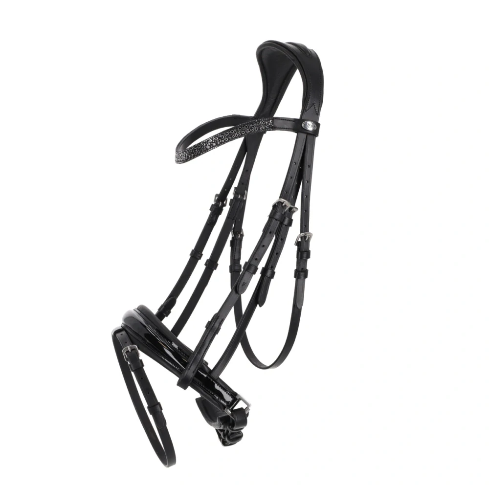 Elegantní kožená uzdečka Lagos nabízí dokonalou kombinaci stylu, pohodlí a funkčnosti. Lakovaný nánosník a čelenka zdobená velkými i malými kamínky upoutá pozornost.