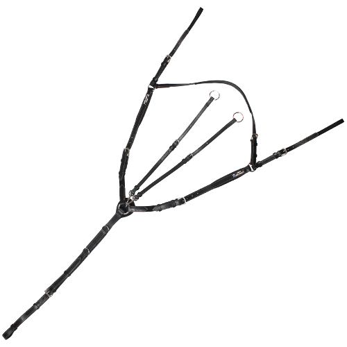 Skokový poprsník k uchycení na zápinky sedla. Nově s krátkou elastickou vložkou. Barva černá se stříbrným kováním.