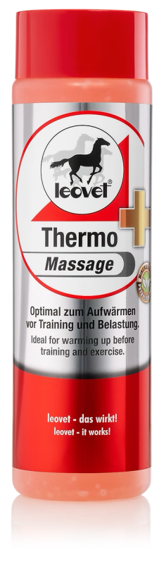 Termomasážní gel je obzvláště příjemný pro zádové svaly, například u klusáků a pro svaly před sedlem. Krátká doba působení zabraňuje nadměrné stimulaci kůže a tkání.