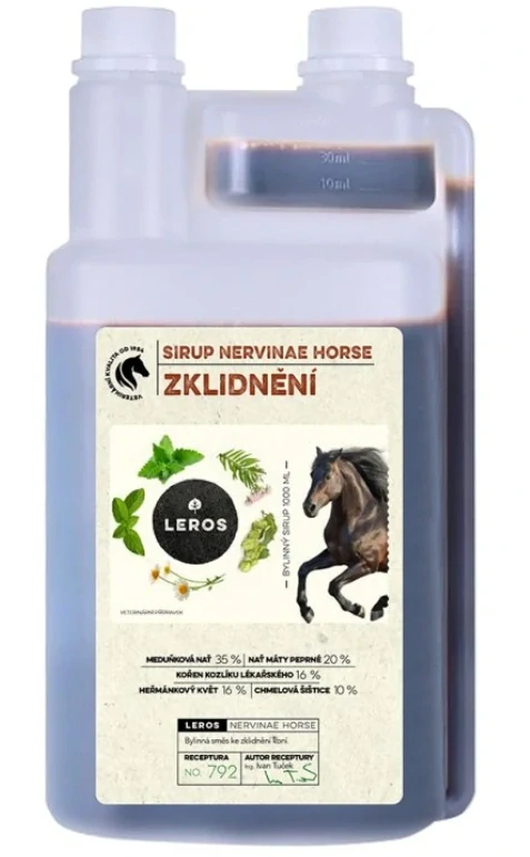 Leros Sirup Nervinae Horse je bylinný sirup, který napomáhá zklidnění koní zejména při nervovém vyčerpání, předrážděnosti a napětí nebo při nepřiměřené reakci na rušivé podněty.