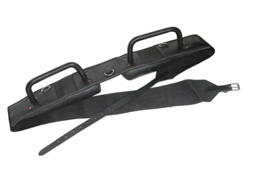 Voltižní madla, kůže a textilní popruh. Kování nikl.