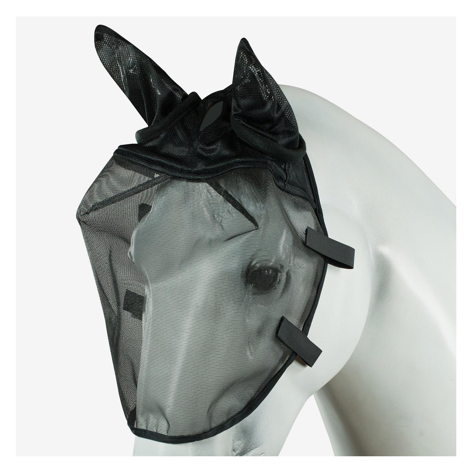 Praktická maska proti hmyzu, která se díky širokým suchým zipům připne k uzdečce. Váš trénink nebo jízda na koni tak bude mnohem příjemnější a pohodlnější. Maska je vyrobena z lehkého prodyšného materiálu. Kolem očí je dostatek prostoru a uši jsou velmi elastické.