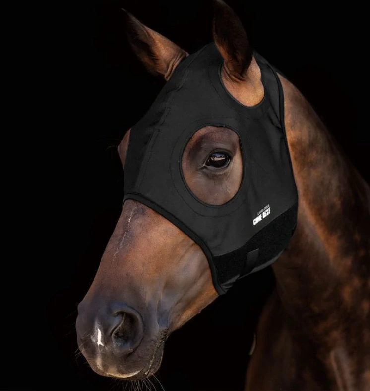 Vysoce kvalitní terapeutická maska bez ochrany uší vyrobena z prodyšné strečové tkaniny s titanem. Podporuje koně tím, že pomáhá zmírnit únavu, uvolnit napětí a zvýšit energii. Snižuje nervozitu na závodech, což přirozeně zvyšuje soustředění a výkon. Je vhodná do stáje, ven i při přepravě. V případě potřeby ji lze používat 24/7.