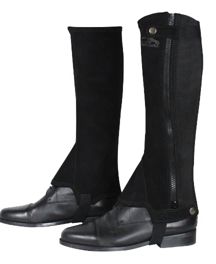 Kvalitní minichaps z velurové kůže. Postranní zapínání na zip. Elastická vložka pro snadnější napasování na nohu. Výrobce Kentaur.