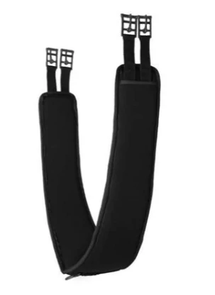 Neoprenový podbřišník značky Horze je vyroben z příjemného měkkého materiálu. Je anatomicky tvarovaný, střední část je rozšířená pro lepší rozložení tlaku. Přezky jsou z nerezové oceli, uprostřed je D-kroužek pro možné zapnutí pomocných otěží. Podbřišník nemá elastické dopínání. Logo Horze. Podbřišník je možno prát na 30 °.