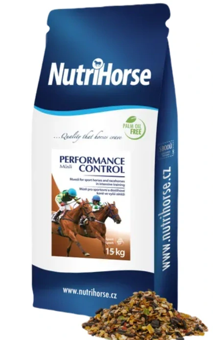 NutriHorse Müsli Performance Control je špičkové krmivo pro sportovní koně, kteří potřebují dostatek energie pro svoje sportovní výkony. Optimální rozložení energie do rychlé a postupně se uvolňující, zajišťuje odpovídající zásobování energie během výkonu. Hydrotermické ošetření obilovin (vločkování a pufování) zvyšuje jejich stravitelnost a využitelnost v trávicím traktu koní.
