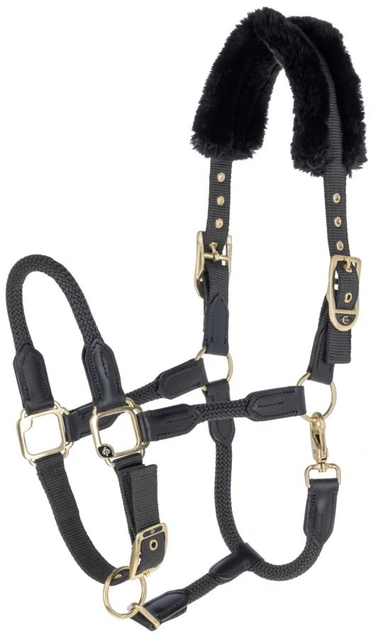 Pevná nylonová ohlávka Covalliero s umělým beránkem pro pohodlí vašeho koně a luxusní vzhled.