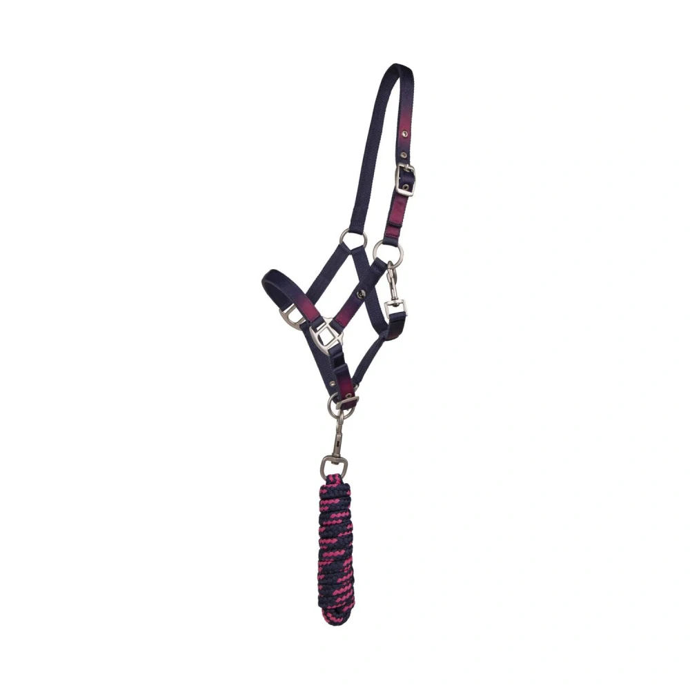 Ohlávkový set pro pony a shetty v ombre fialovo-modré barvě. Ohlávka je nastavitelná na nátylníku a nánosníku. Zapínání na karabinky. Set včetně vodítka s otočnou karabinou.