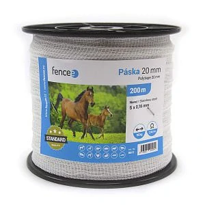 - Ohradníková vodivá páska s šířkou 20 mm, bílá, 200m, odpor 7,34 Ω/m