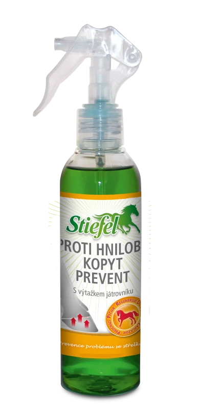 Veterinární přípravek Stiefel Proti hnilobě kopyt prevent, pečuje o střelku, chodidlo i bílou čáru a napomáhá jejich regeneraci.