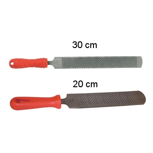 - Jedna strana s hrubou a hlubokou rašplovací stranou, druhá strana s ostrým a jemným pilníkem.