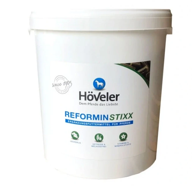 ReforminStiXX je praktický minerální doplněk pamlsek pro koně. S Reformin StiXX můžete svého koně odměnit a zároveň mu dodáte kombinaci vitaminů, stopových prvků a minerálů.