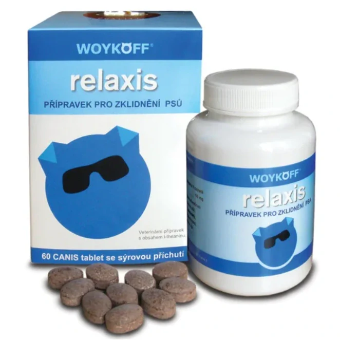 Woykoff Relaxis je veterinární přípravek ve formě tablet se sýrovou příchutí s obsahem esenciální aminokyseliny L-theanin, která je obsažena v zeleném čaji.