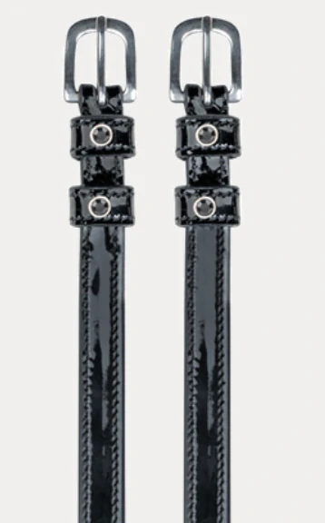 Řemínky do šporen značky Waldhausen z černé lakované kůže. Zdobené kamínky, prodáváno v páru.
