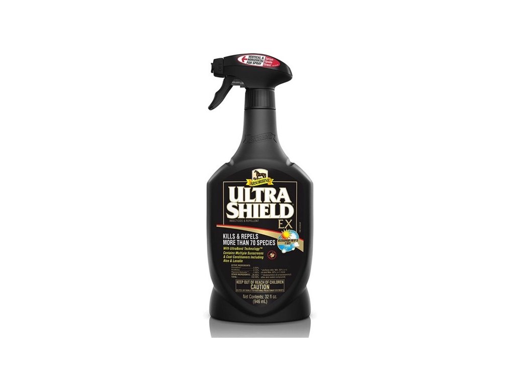 UltraShield® EX Insecticide & Repellent se nevypotí, je voděodolný, nemastný a jeho prodloužený účinek, běžně zajišťovaný tzv. slunečními krémy pod různými obchodními názvy, je zde posílen použitím rovnou dvou takových. Obsahuje také výtažky z aloe a lanolinu. Odpuzuje a zabíjí široké spektrum hmyzu, od otravných much a mušek, přes moskyty, komáry, pakomárce (Culicoides), klíšťata, blechy, kloše, muchničky, tiplíky, vši...