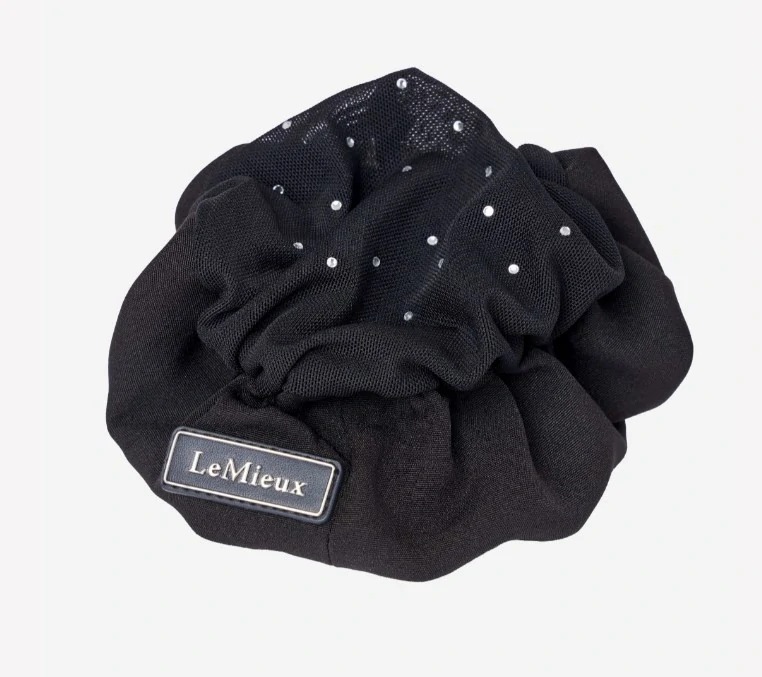 Elegantní saténová gumička do vlasů značky LeMieux. Integrovaná síťka na vlasy, která je ozdobená třpytivými kamínky.