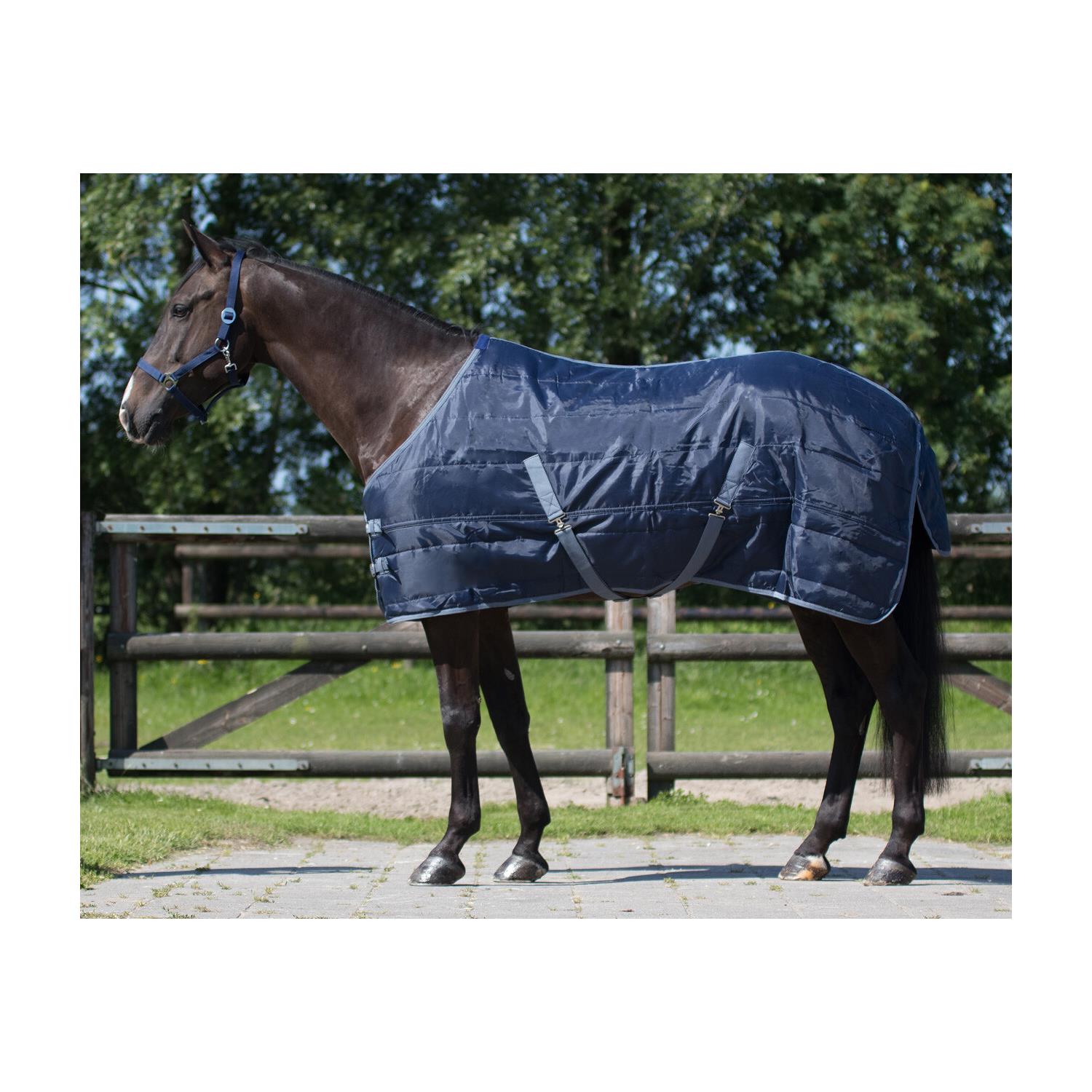 Stájová deka značky QHP se zateplením 150g. Deka má dobrý střih s křížovým zapínáním pod břichem, zapínání na prsou na nastavitelné přezky z nerezové oceli. Odolnost materiálu proti protržení je 210 Denier.