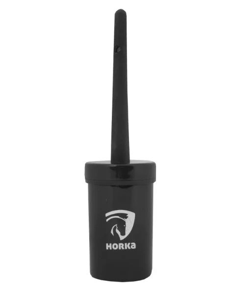 K uchování a přenášení menšího množství oleje na kopyta a k ochraně štětce.