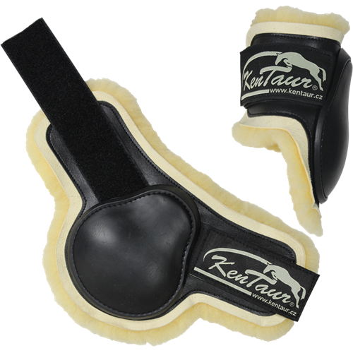 Zadní strouhavky s pravým beránkem a neoprenovým polstrováním. Zapínání je na dvojitý suchý zip. Na pásku je světlé logo Kentaur.