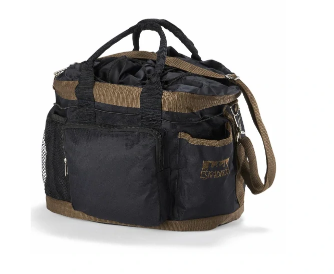 Praktická velmi prostorná taška na čištění pro koně Eskadron. Do tašky se vejde také např. jezdecká přilba. Vnější materiál tašky je voděodolný a nahoře ji lze stáhnout a uzavřít provázkem. Taška má velký počet kapes po svém obvodu v různých velikostech a uvnitř kapsu na zip na drobné nebo cenné věci.