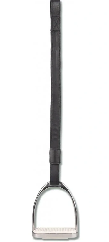 Kvalitní třmenové řemeny Waldhausen, vyrobené z měkké kůže s nylonovým jádrem. Mezi nohou jezdce a sedlovou čepelí leží pouze jeden popruh. Snadná a rychlá změna délky třmenů.