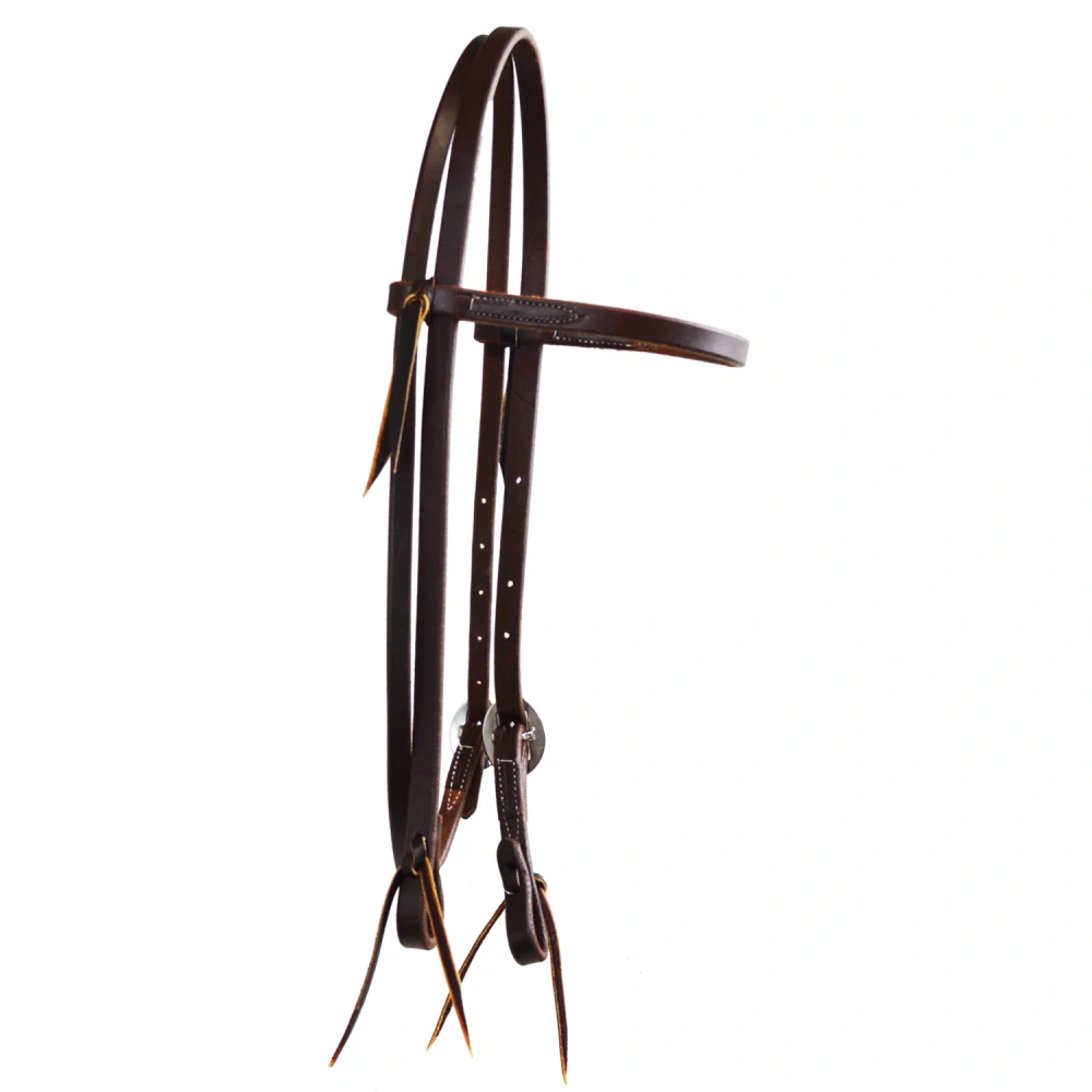 Uzdečka na westernové ježdění z měkké olejované kůže s nezdobenou hladkou čelenkou. Uzdečka má oválné kovové přezky ve stříbrné barvě.