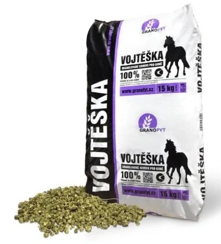 Krmivo vyráběné pouze z vojtěšky, která se po sklizni suší na slunci a následně granuluje do formy pelet o průměru 8 mm. Vyznačuje se vysokým podílem bílkovin, vlákniny, vápníku, minerálů a vitamínů. Naopak cukry a škroby jsou zastoupeny minimálně.