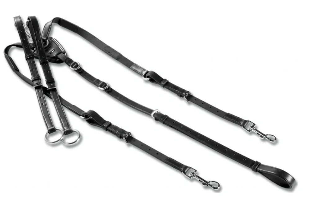 Vyrobeno z vysoce kvalitní kůže. S nerezovými přezkami, elastickou vložkou u krku a odnímatelnými martingalovými vidličkami.