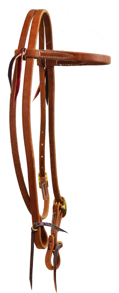 Uzdečka na westernové ježdění z měkké olejované kůže s nezdobenou hladkou čelenkou. Uzdečka má kovové přezky ve zlaté barvě.