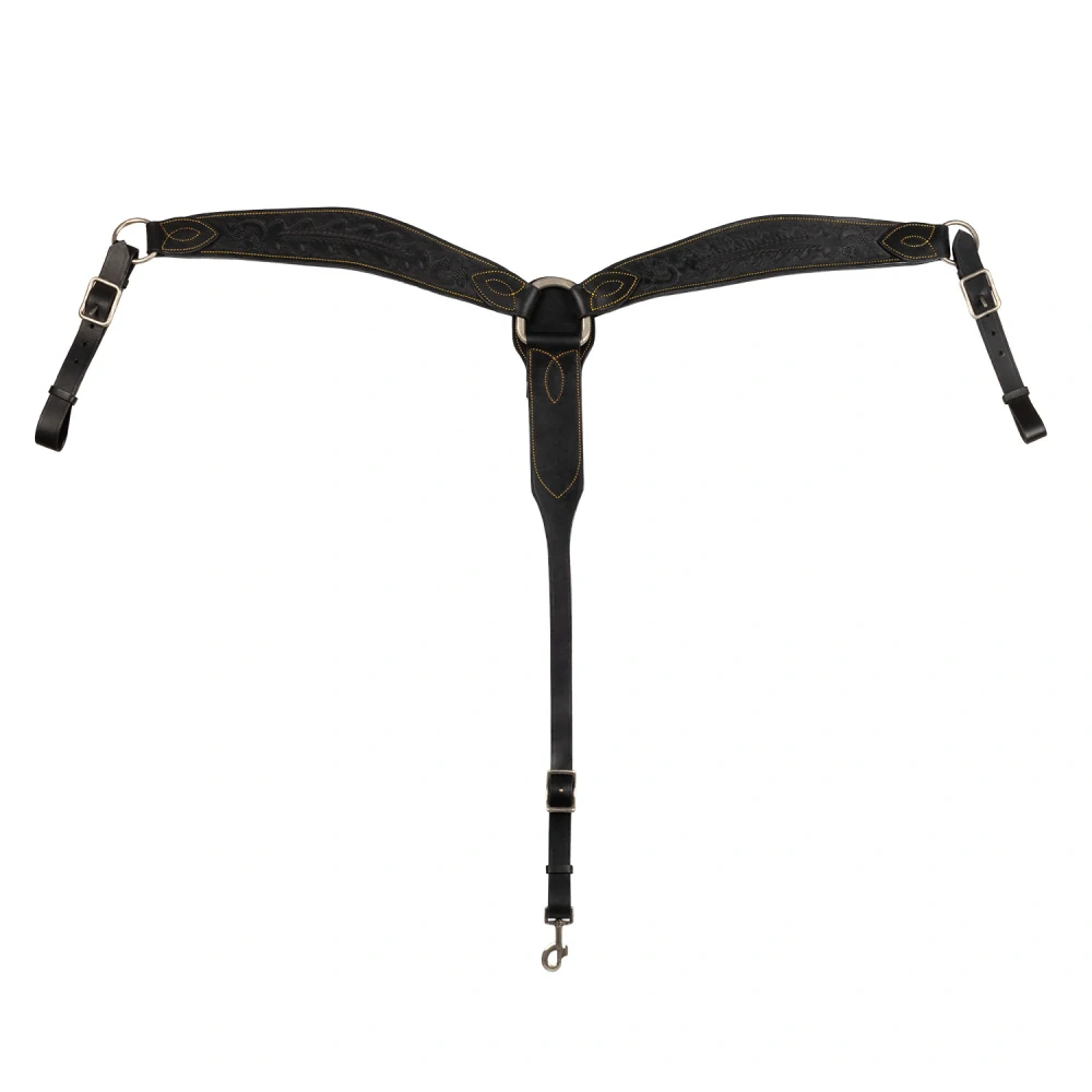 Westernový poprsník Lakota vyrobený z měkké kůže, zdobený květinovým vzorem. K dispozici ve více barvách. Velikost cob/full celý popis
